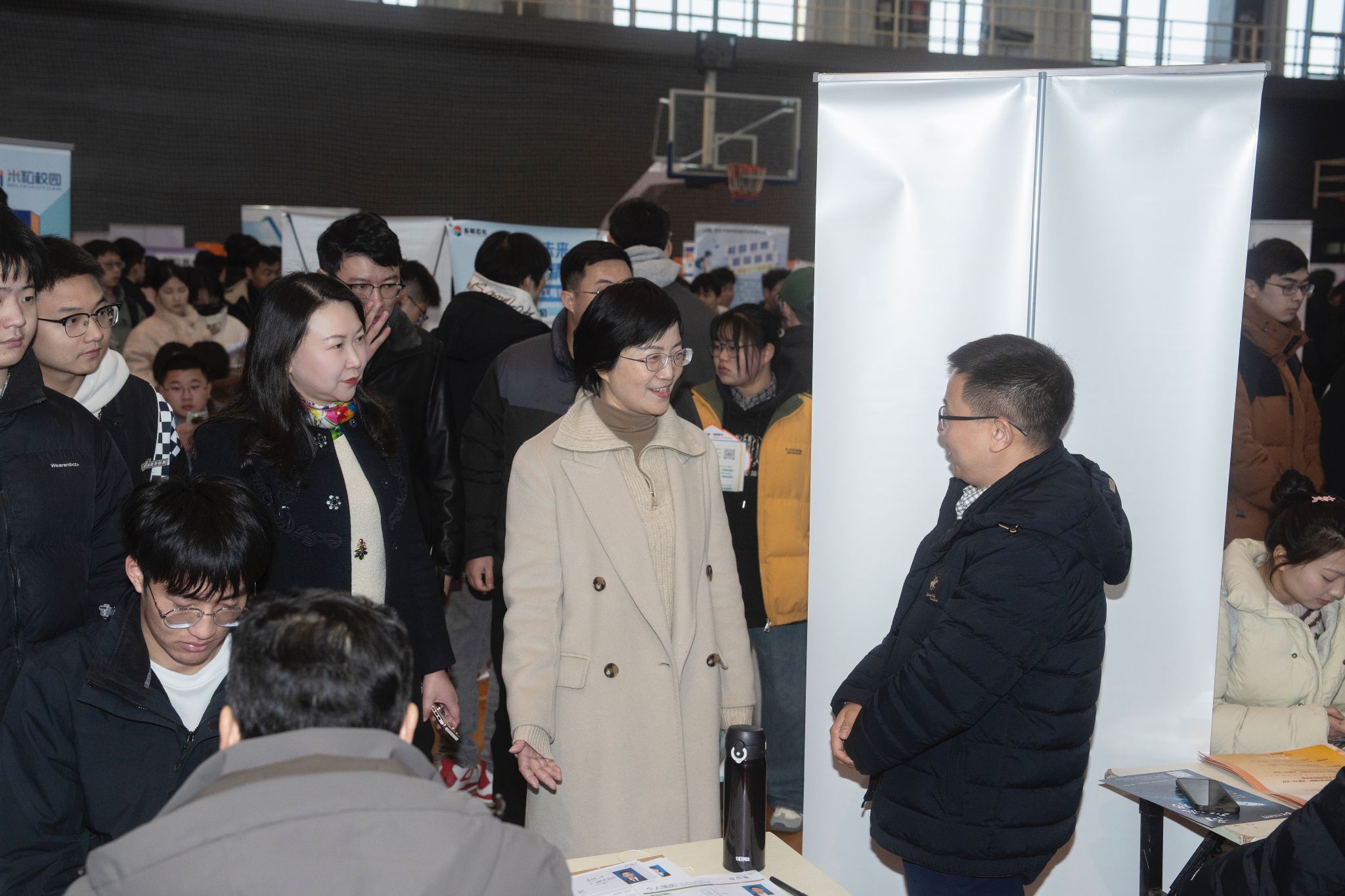 为进一步落实教育部春季学期就业重点工作推进会会议精神,深入开展“春季促就业行动”,3月5日下午,凯发举办2025届毕业生春季校园招聘会。党委常委、副校长汪群来到招聘现场与招聘单位代表、毕业生亲切交流。