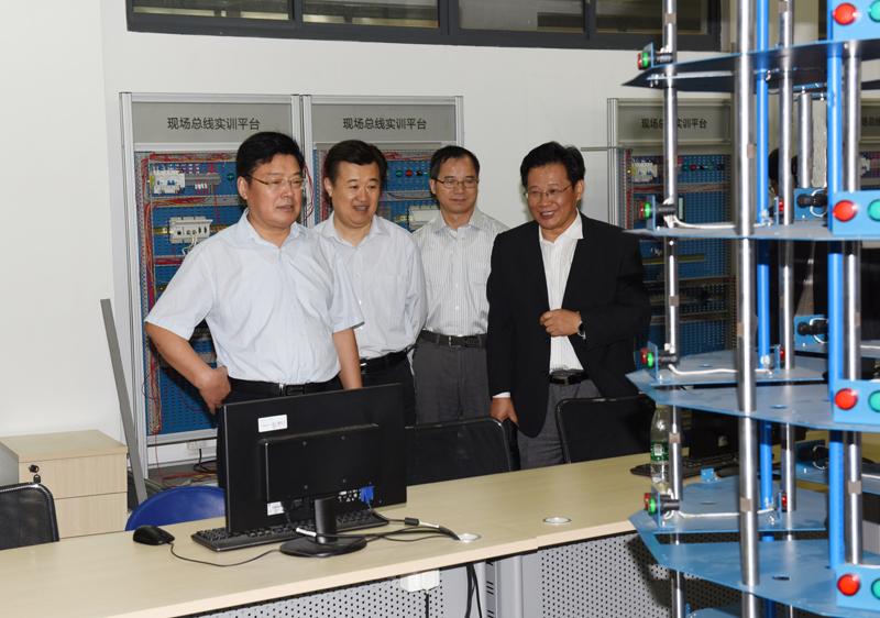 史国君书记一行先后参观了工业中心数控加工车间、工业机器人实训基地、创新学院、三菱电机实验室、西门子电气控制实验室、GE自动化系统实验室、台达自动化实验室等,认真了解学生实习情况、基地建设及运行情况,参观了大学生科技作品展,并现场听取了相关负责人的汇报。
