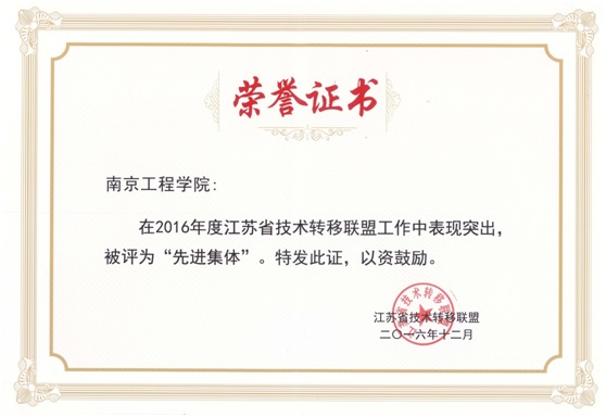 12月9日,江苏省技术转移联盟2016年度年会暨第一届理事会第二次会议在南京大学召开。会议对2016年度16家先进集体和16位优秀个人进行了表彰,我校在83家成员单位中成绩突出,获江苏省技术转移工作“先进集体”荣誉称号。