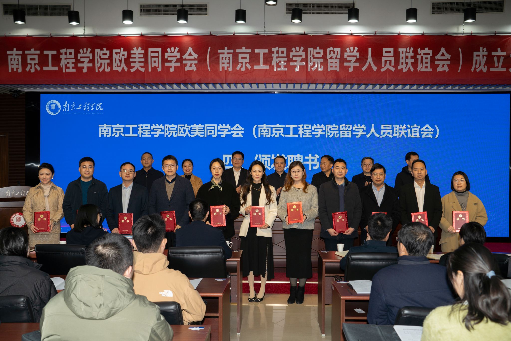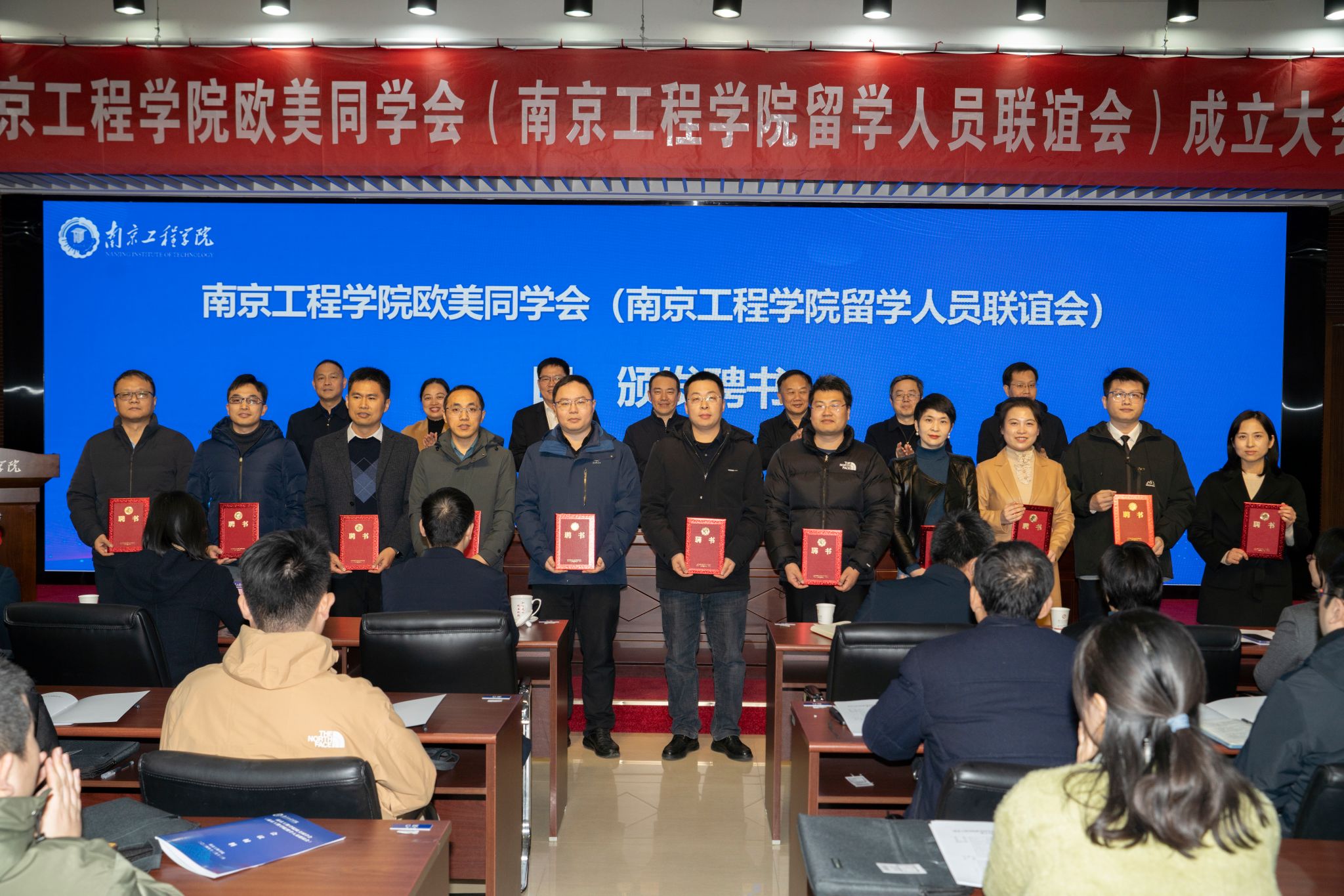 会议介绍了我校欧美同学会的成立背景和筹备情况,宣读了我校欧美同学会成立的批文和第一届理事会成员名单、第一届理事会领导班子成员名单。李华冠当选会长,丁文政当选副会长,朱玥霖担任秘书长,郑璐恺、许悦、许可、温国砫当选副秘书长。到会领导为我校欧美同学会理事会成员颁发了聘书。