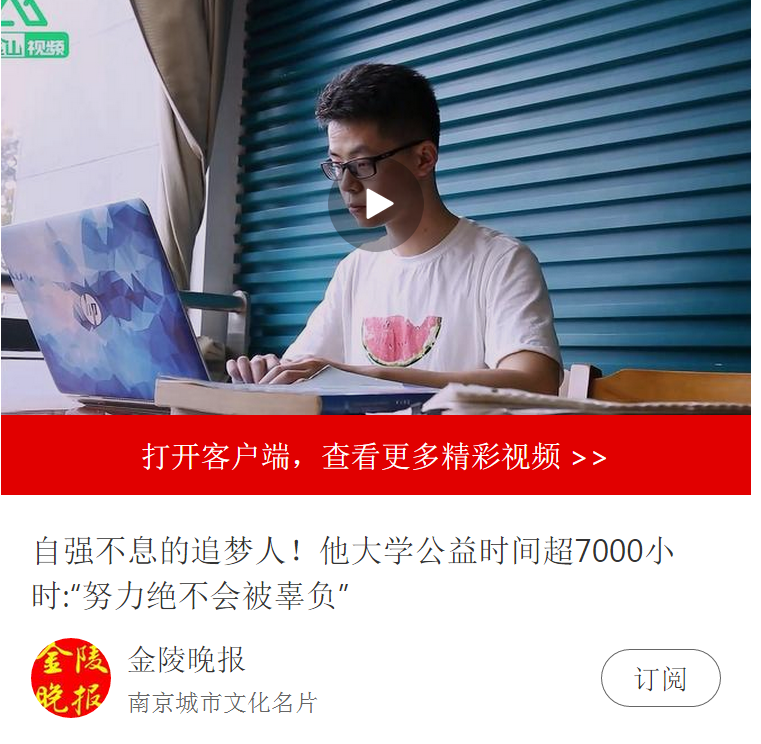 《金陵晚报》:自强不息的追梦人!他和团队公益时间超7000小时:“努力绝不会被辜负”