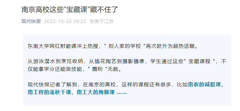 《现代快报》:南京高校这些“宝藏课”藏不住了