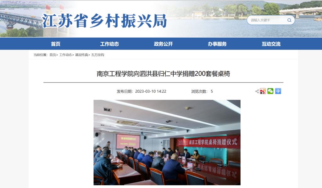 《江苏省乡村振兴局》:凯发k8官网向泗洪县归仁中学捐赠200套餐桌椅