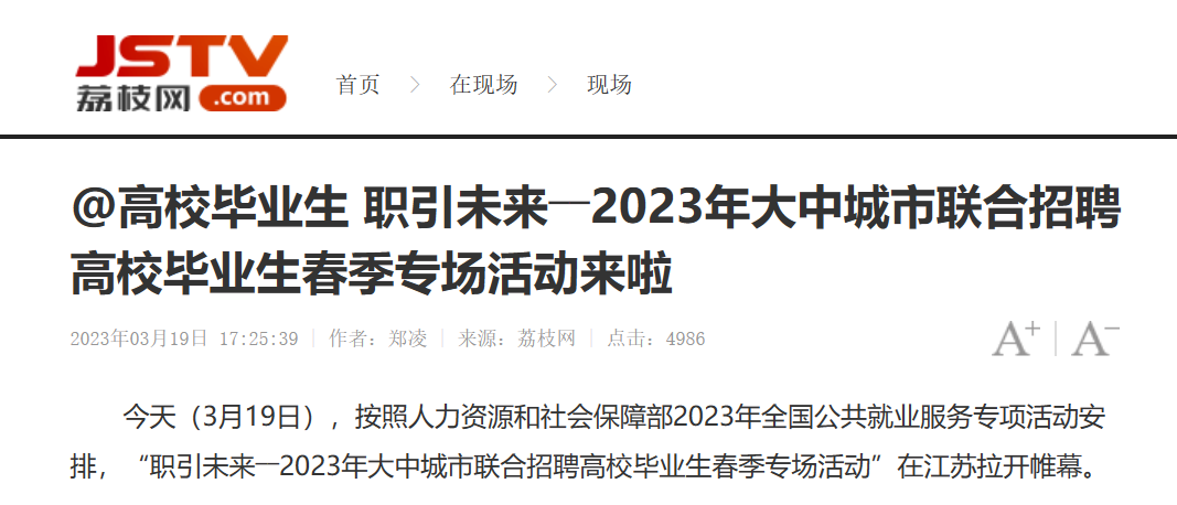 《荔枝网》:@高校毕业生 职引未来――2023年大中城市联合招聘 高校毕业生春季专场活动来啦