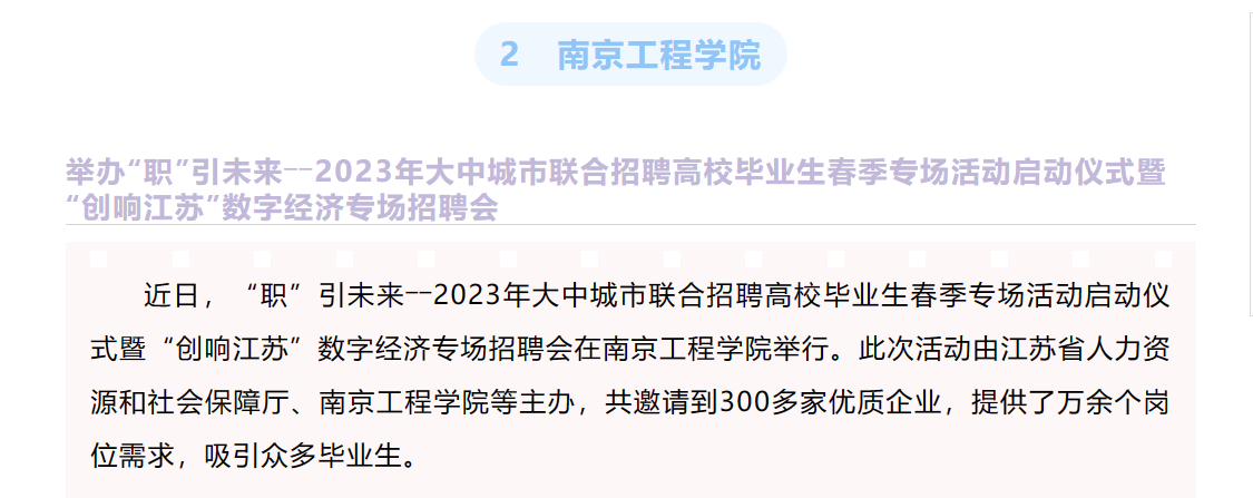 《江苏教育发布》:凯发k8官网举办“职”引未来――2023年大中城市联合招聘高校毕业生春季专场活动启动仪式暨“创响江苏”数字经济专场招聘会