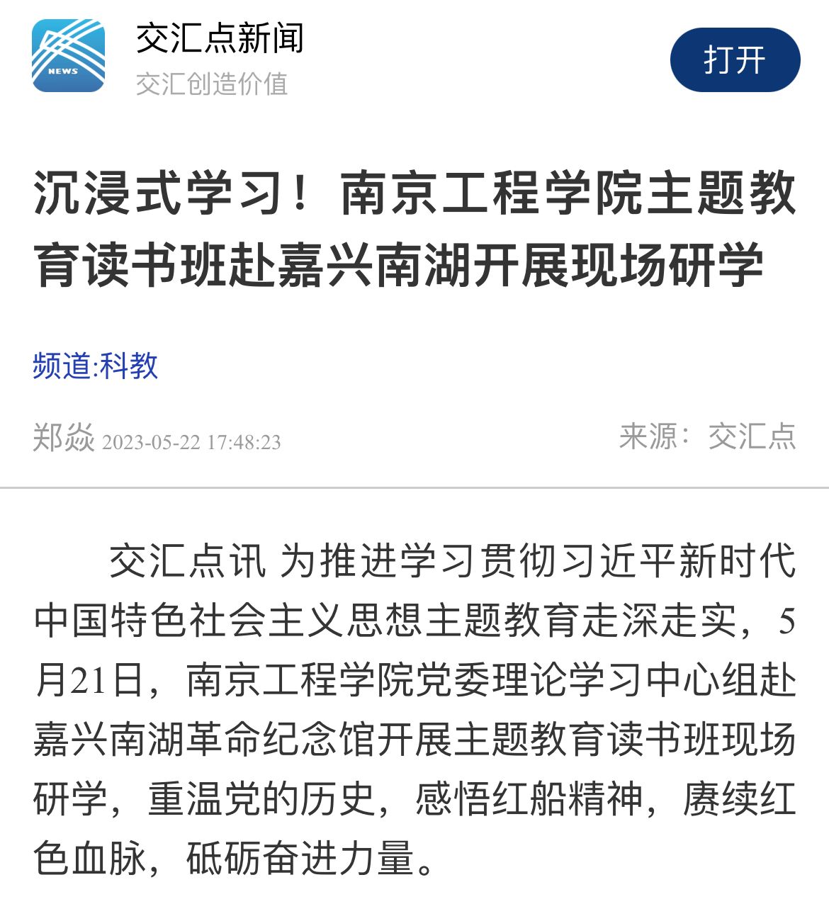 《交汇点》:沉浸式学习!凯发k8官网主题教育读书班赴嘉兴南湖开展现场研学