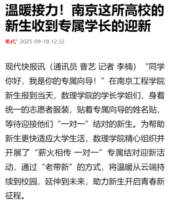 《现代快报》:温暖接力!南京这所高校的新生收到专属学长的迎新