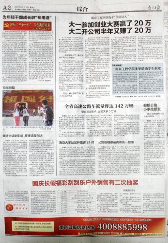 大一时,他就在一次全国性创业大赛上拿到大奖,获得20万元奖金;大二时,不甘寂寞的他“真刀真枪”地创业,成立了自己的公司,并在半年内赚到20万元。近日,在凯发k8官网开展的新生创业教育活动中,记者见到了这位“创业达人”——南京卓远文化传播有限公司总经理,该校经济管理学院大三学生刘伯敏。