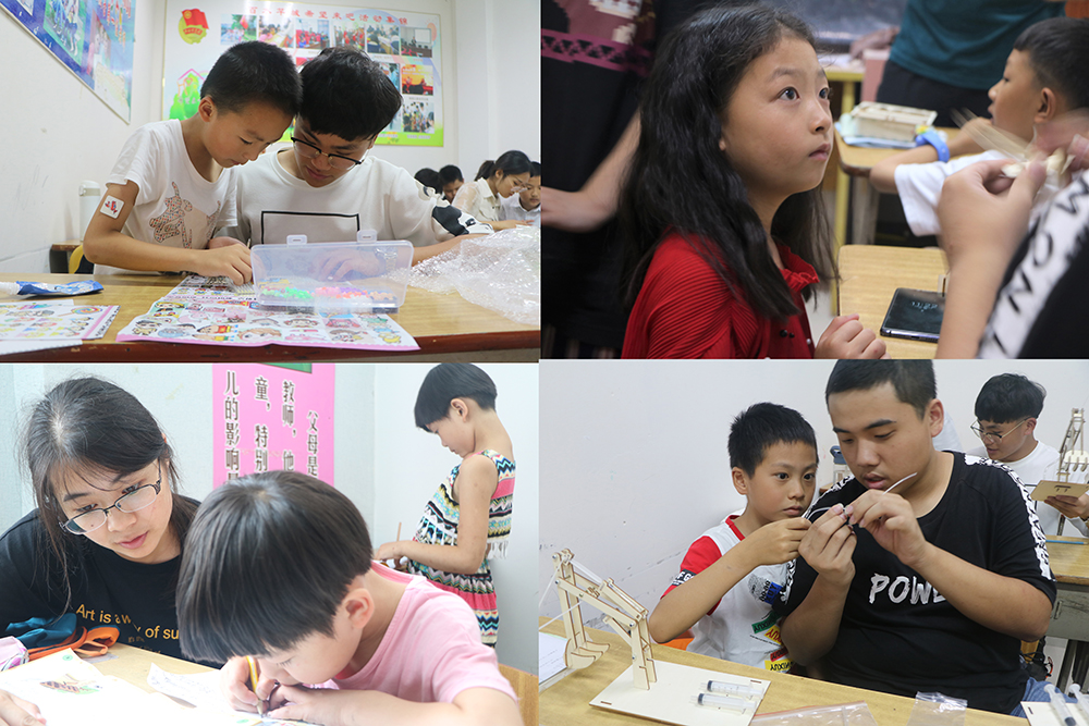 为了保证课程质量,“向阳”南京实践团历时一个月的准备,精心招募团队成员,一起讨论备课。在活动中,支教队员与孩子们一起动手制作机械臂,并在制作过程中向孩子们介绍科技创新小知识;指导孩子们制作庄严的国旗升降台,让爱国思想潜移默化印在孩子的脑海里;与孩子们一起剪切组装亚克力板,制作成全息投影,烟花、飞碟、海底世界的三维效果跃然于眼前,让孩子们感受动手创造的无穷乐趣。活动也得到家长的支持参与,与孩子一起完成作品。
