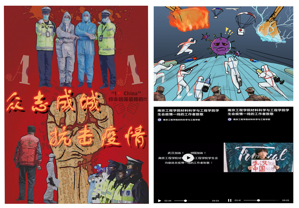 高分子191王冉、成型184张铖泓的手绘作品和材料学院学生会制作宣传视频