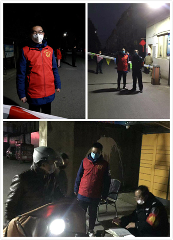 模具171班倪浩奇是一名预备党员,在严峻的疫情防控期间,他毅然申请成为了一名志愿者,在定点社区协助辅警完成往来人员的体温测量、信息登记和往来车辆排查等工作。下午4点至凌晨12点是他的工作时段,面对气温渐低、来往人员多的困难,他毫不退却。“我是一名预备党员,不忘初心、牢记使命,我一直铭记于心。疫情当前,绝不退缩,应该积极响应党和国家的号召,为家乡做一份贡献,发挥先锋模范作用。看着全国各地的医疗队赶往武汉奋战在一线,我要在家乡尽一份绵薄之力,为家乡人民做贡献,守卫我们的家园。”他说道。