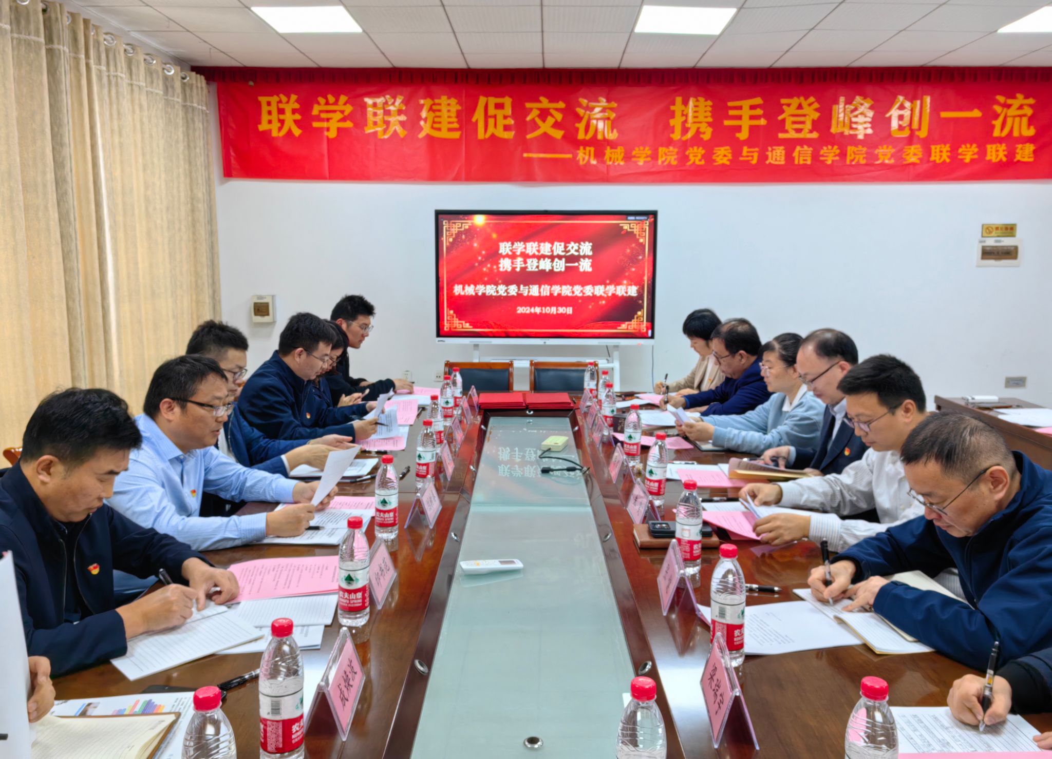 10月30日下午,机械凯发党委与通信与人工智能学院、集成电路学院党委在信息楼C308开展“联学联建促交流 携手登峰创一流”联学联建活动。双方学院党委理论学习中心组全体成员参加了本次活动,活动由通信与人工智能学院、集成电路学院党委书记陈华主持。