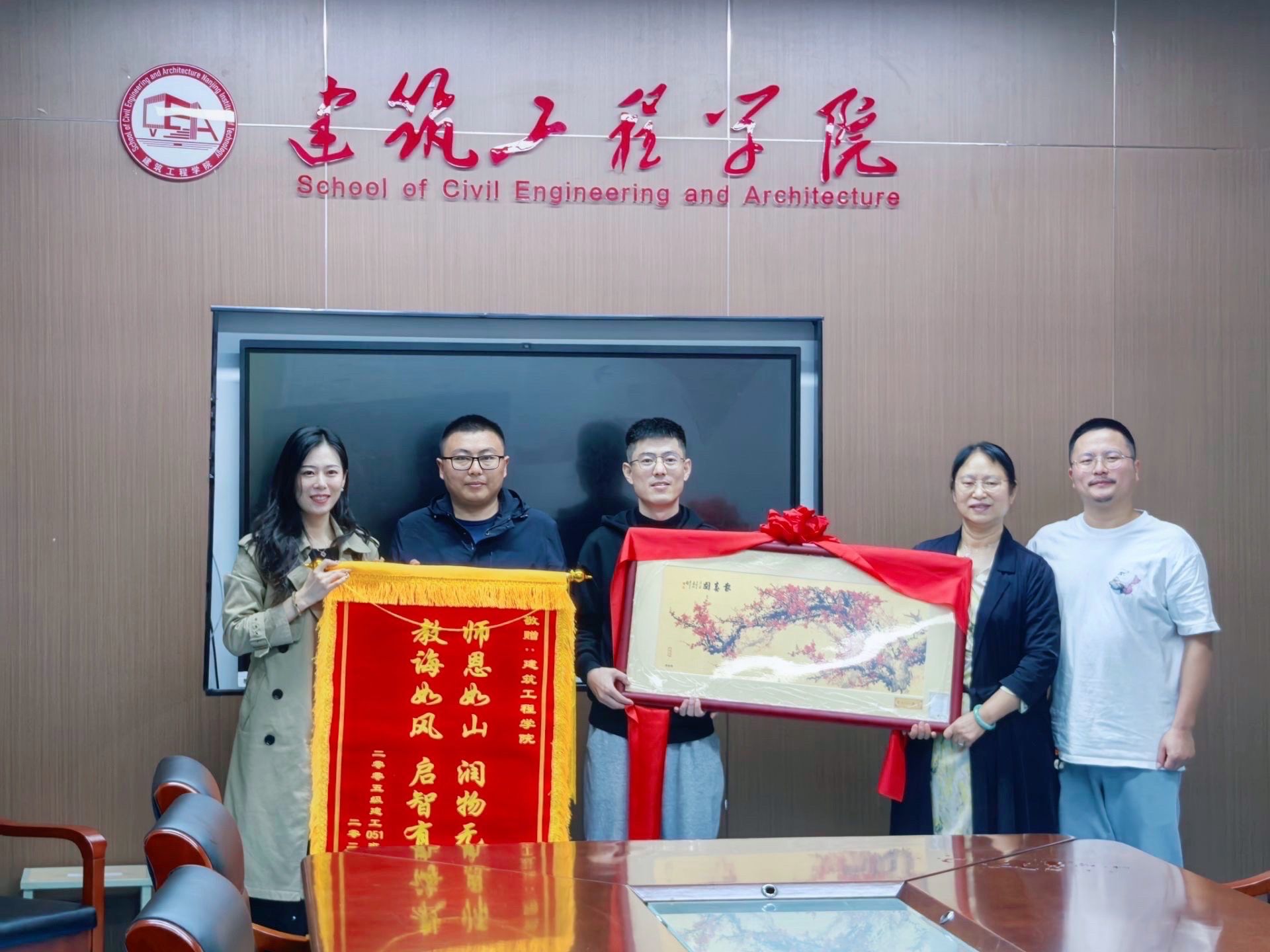 会上,校友代表向学院赠送了锦旗和金箔画,希望母校蓬勃发展,再创辉煌。返校期间,校友们还参观了图书馆、天印湖等地,感受母校新貌。