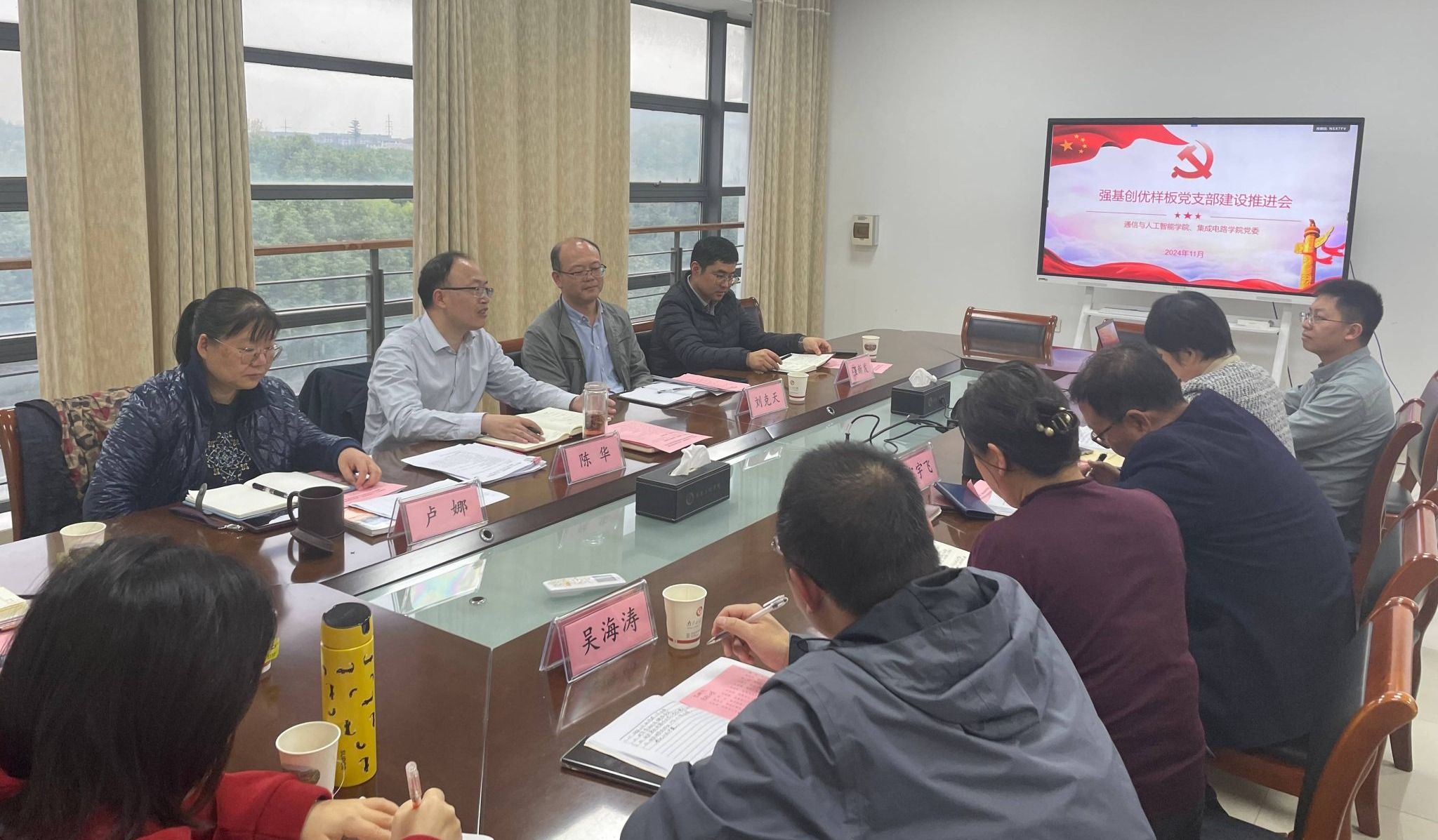 为落实新时代党建示范创建和质量创优行动,进一步加强校党建工作标杆院系建设,推进党建工作全国和全省样板党支部培育创建工作,11月20日,通信与人工智能学院、集成电路学院党委在信息楼C308召开全国和全省党建工作样板支部培育创建工作推进会。凯发全国样板支部电力教工第一支部书记刘克天、全国样板支部培育创建单位材料学教工党支部书记强新发受邀参会,学院党委班子和党支部委员参加会议。会议由学院党委书记陈华主持。