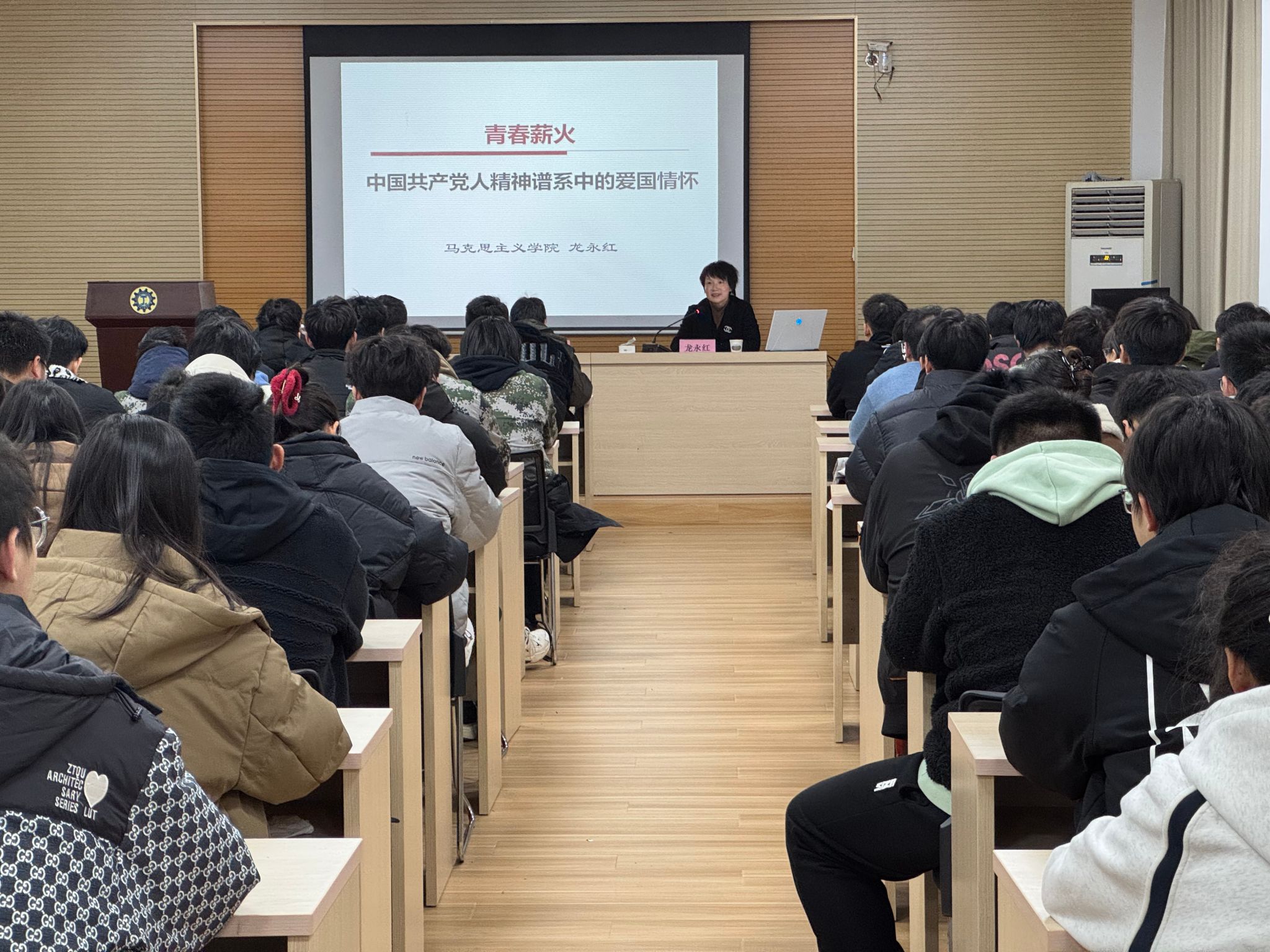 龙永红从中国共产党人精神谱系的源起与内涵、精神谱系中爱国情怀的彰显、当代青年责任与使命的传承发展三个方面展开了宣讲,具体解读了精神谱系是如何在国家历史进程中逐步积淀的,爱国情怀则始终贯穿于这一过程。通过结合历史事件、英雄人物,深刻阐释了个人的前途和命运始终同祖国紧密相连。