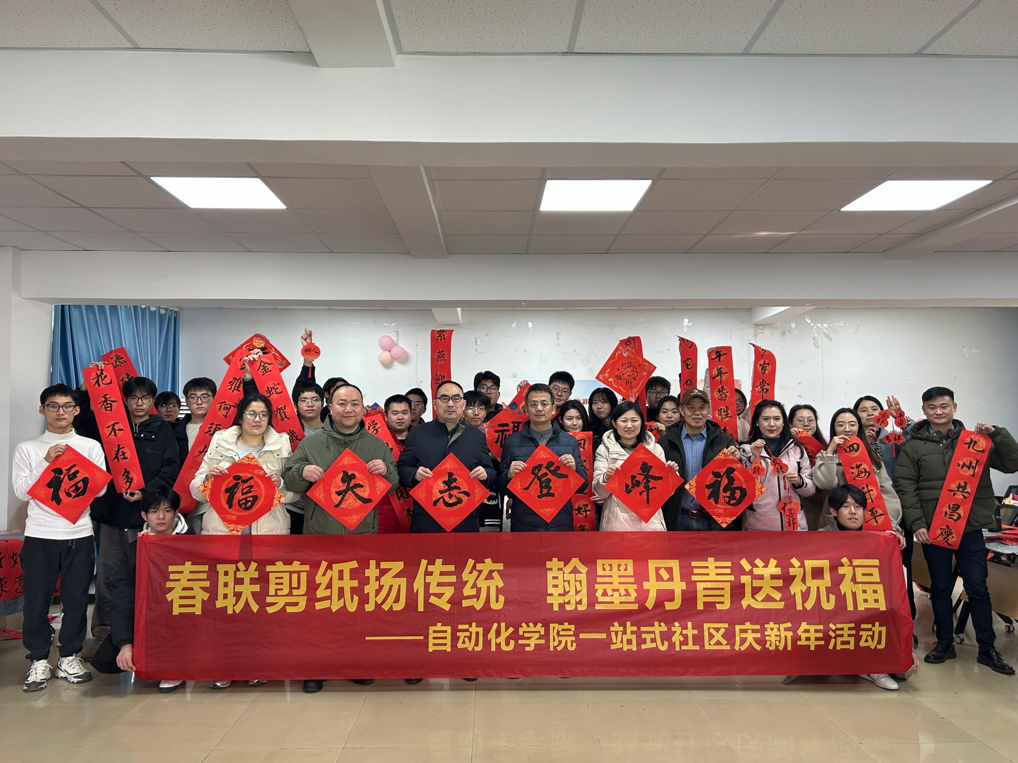 墨香四溢传文化,情暖社区迎新年。1月2日,自动化学院走进“一站式” 学生社区,举行“春联剪纸扬传统,翰墨丹青送祝福”庆新年活动,弘扬中华优秀传统文化,铸牢中华民族共同体意识。学院全体党政领导班子、学工办全体辅导员、学院关工委教师王少平、部分学生代表参与活动。